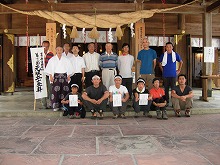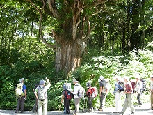 三日目は、雷鳥沢ヒュッテのお母さんから激励の言葉をいただき、室堂の自然保護センターでは、おこじょを見た報告をしました。美女平まで行く途中のブナ平でバスを降り、当社の林苑顧問であり元富山県森林管理署長の松久卓氏から立山スギやブナ坂・美女平の森林の解説をいただき、昔の登拜道を通つて美女平駅まで行きました。その後、予定通り神社へ到着し、終了式を行ひました。今回は、隊員が三人と少ないでしたが、三人とも強い精神と体力で、サポーターを凌ぐほどでありました。