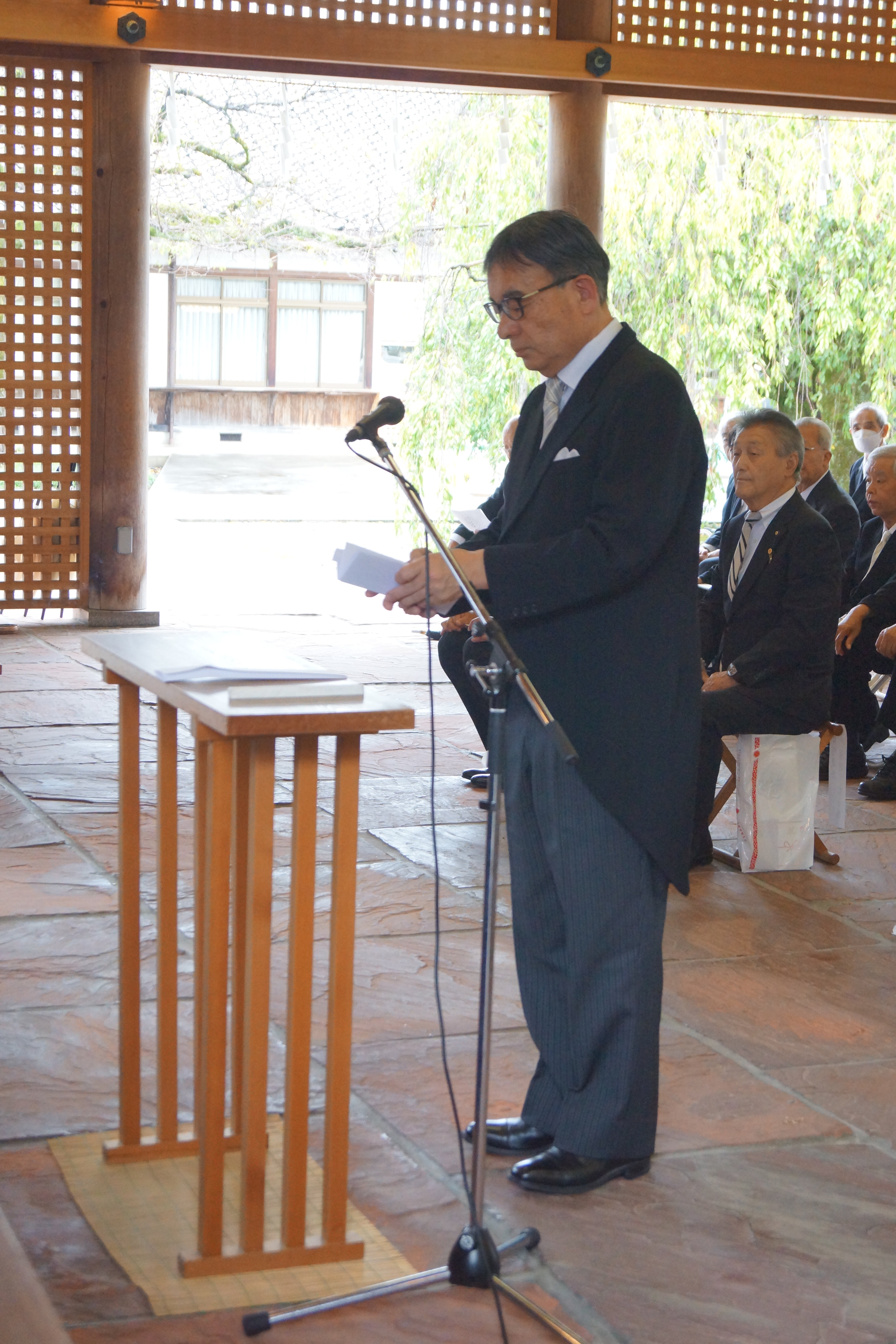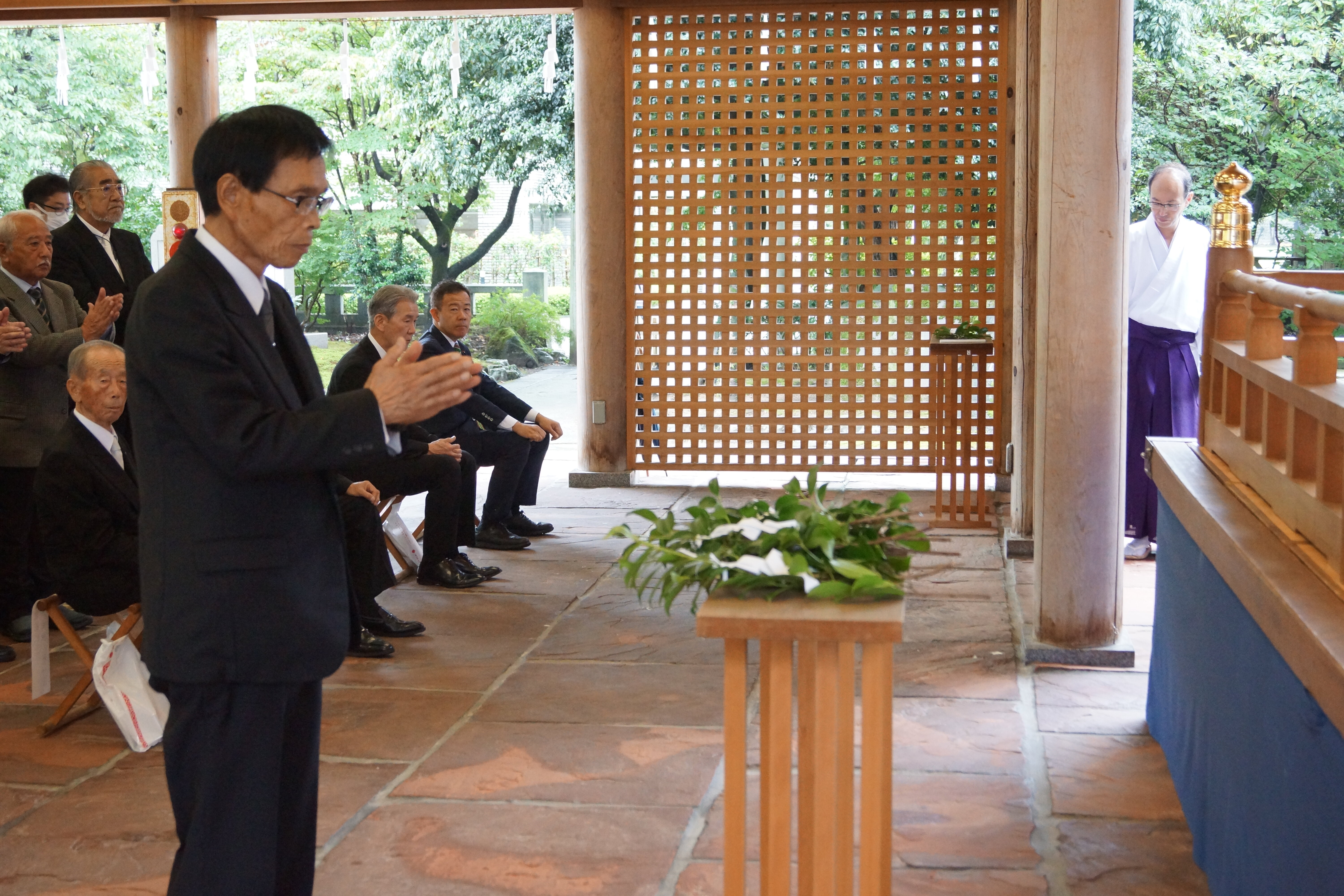 祭典には、崇敬総代副会長 田林修一様、富山県遺族会長 山本甚克様、富山市遺族会長 町村進様、富山県神社庁長 藤井秀嗣様、日枝神社宮司 平尾旨明様、御遺族代表 梨雲福祉会 理事長 林一枝様をはじめ伊佐雄志神社御遺族、崇敬会員の皆様が参列されました。宮司が祝詞を奏上申上げ、「立山の御歌」を参列者一同で奉唱致しました。