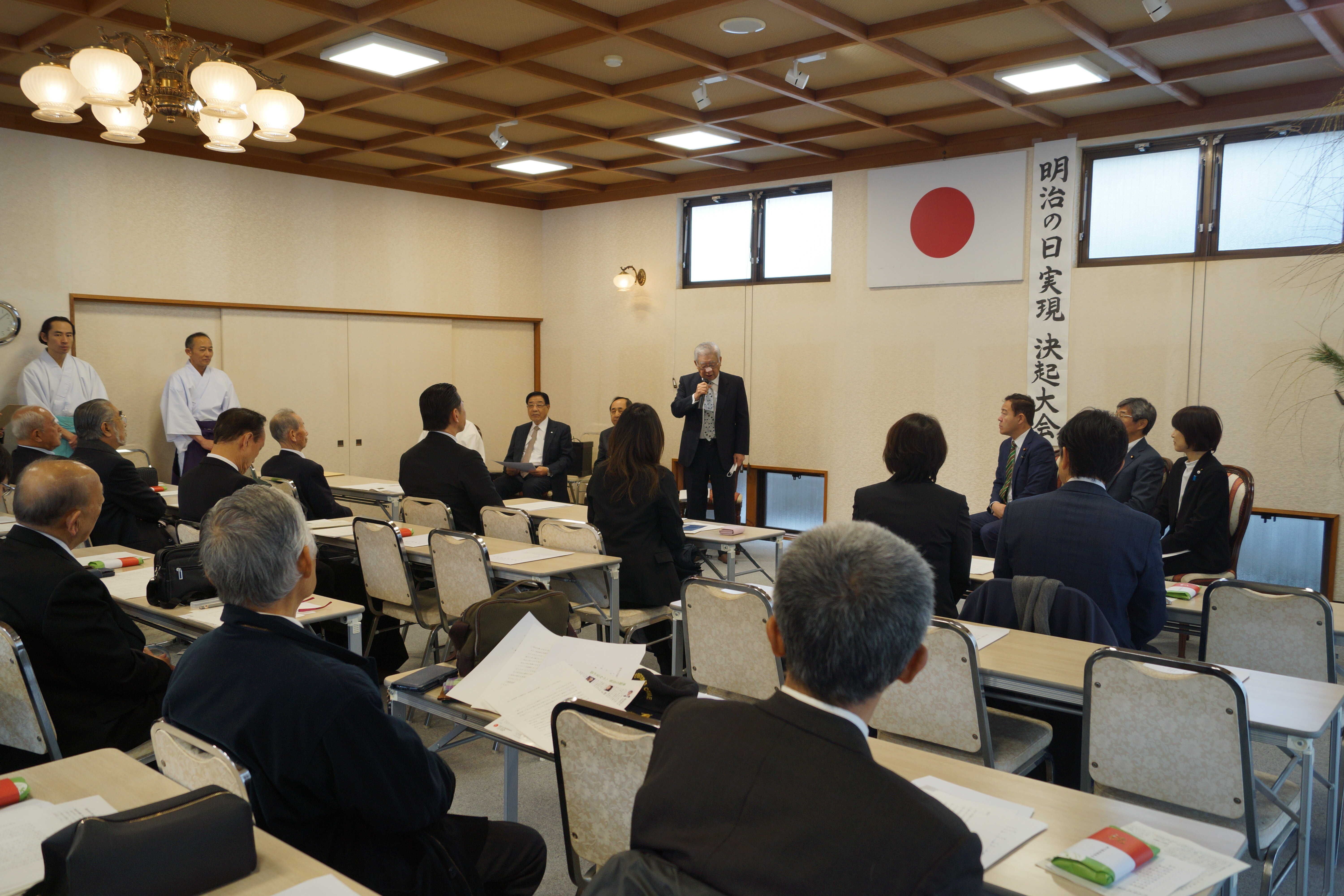 祭典の後には、當神社参集殿にて「明治の日実現!決起集会」を開催致しました。