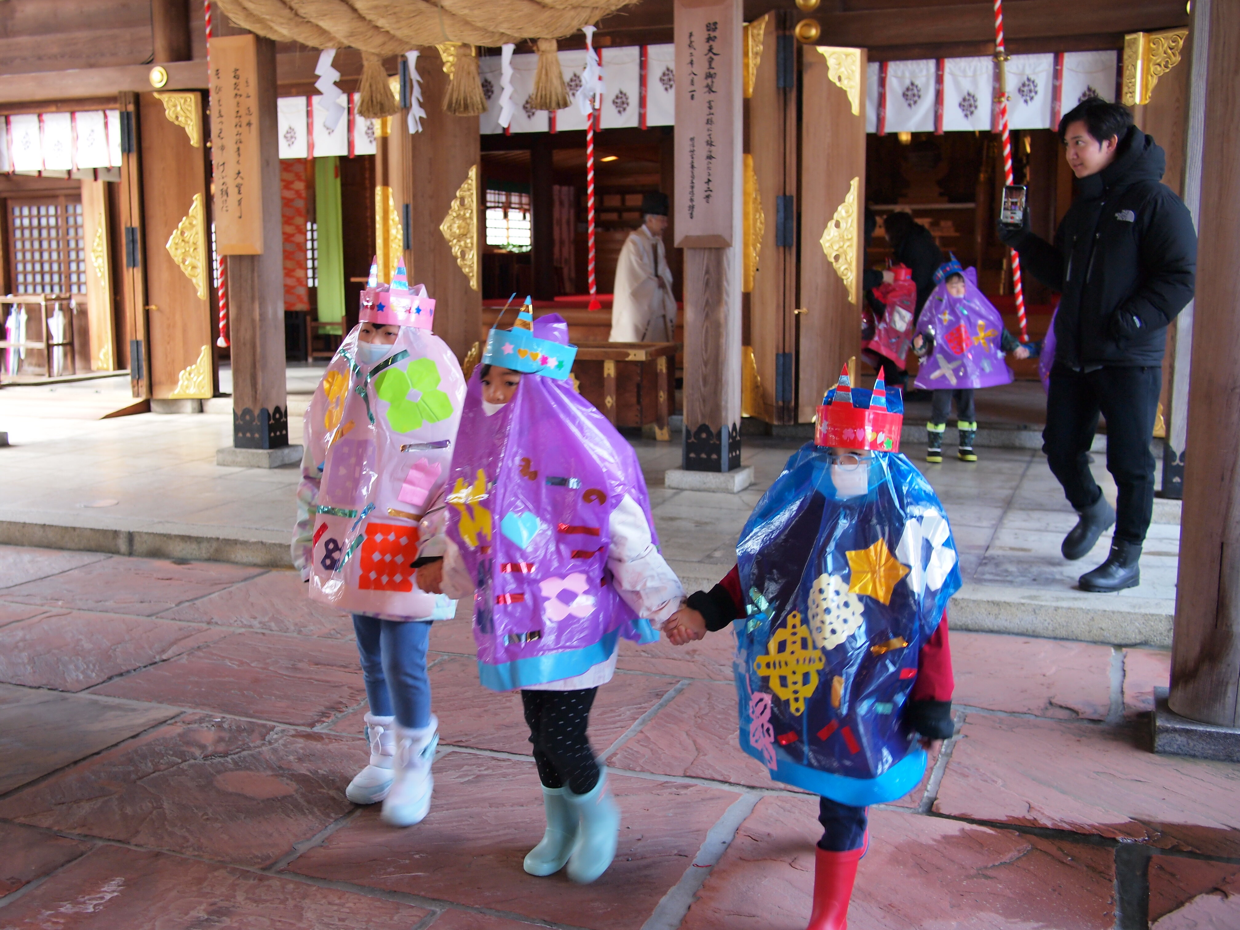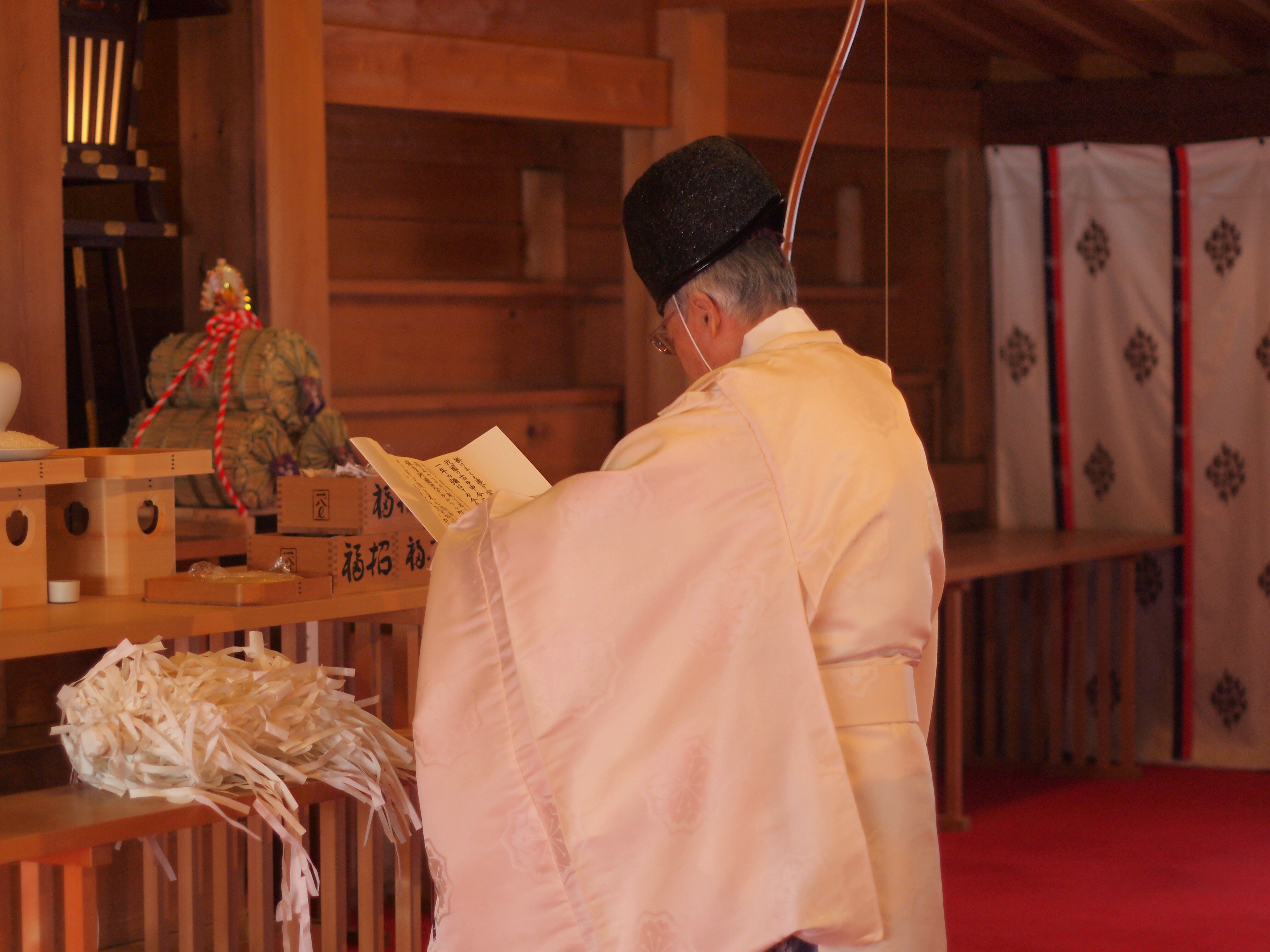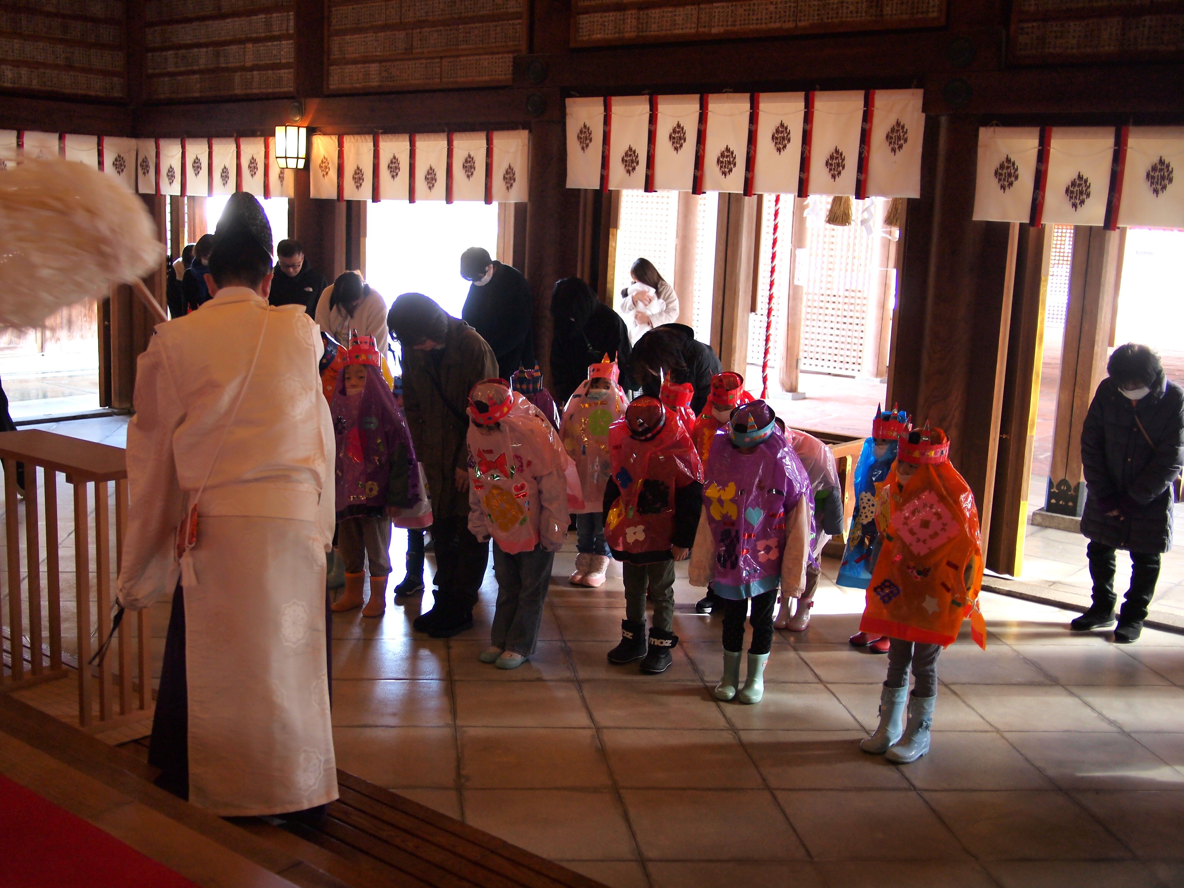 節分日の2月3日に雲雀ケ丘保育所の鬼に扮した園児たちが、先生や保護者の方々と共に神社を訪れ、節分祭を齋行いたしました。 はじめにお祓ひをし、宮司が祝詞を奏上、そして立春を迎へるにあたり諸々の邪氣を祓ふ「鳴弦の儀」をおこなひ、先生と園児代表が玉串を奉りて拜禮いたしました。 次に「豆打ちの儀」を行ひ、宮司と先生により福豆を撒き、園児たちがは楽しさうに福豆を拾ひました。 園児たちは、健康で無事に過ごせることを願ひつつ、元気に保育所へと戻つて行きました。ご参列いただいた雲雀ケ丘保育所の皆様、ありがたうございました。