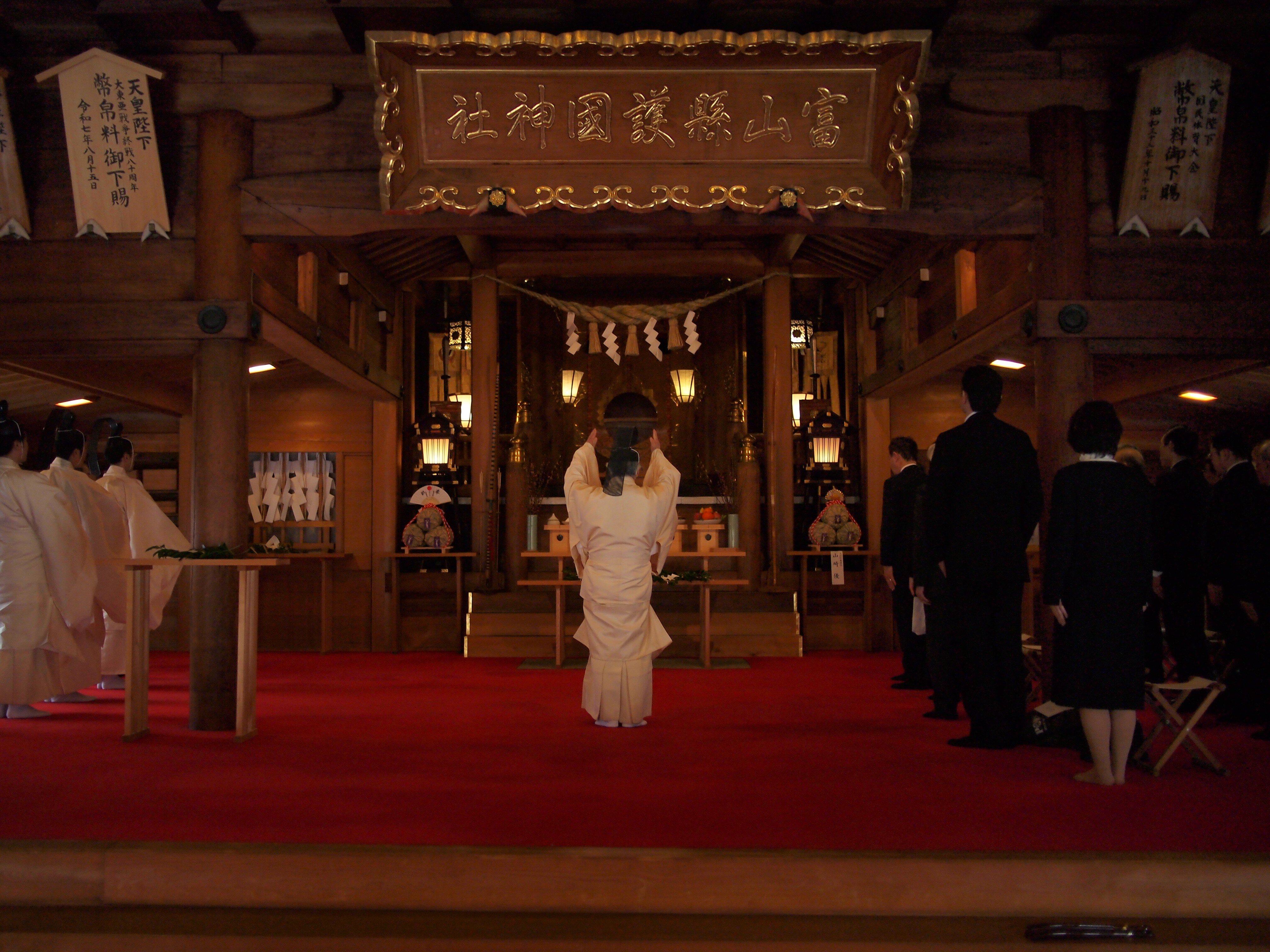 崇敬総代副会長 高田順一様、衆議院議員 田畑裕明様、富山県議会議員 尾山謙二郎様、林一枝梨雲福祉会理事長、富山市遺族会長 町村進様、神社役員、崇敬会員、日本会議富山運営委員の皆様がご参列のもと、宮司が祝詞奏上、そして富山交聲合唱団会長 黒坂康之様・康子様御夫妻により、奉祝曲『御製 五箇山を』が、雅やかに奉唱されました。御製(おほみうた)「五箇山をおとづれし日の夕餉時森に響かふこきりこの唄」は、天皇陛下が皇太孫殿下にましました昭和五十一年、学習院高等科地理研究会の研修のために五箇山をご訪問された御砌の御作で、平成三年の歌会始にご発表なされたのであります。御即位を奉祝して、作曲家であり富山交聲合唱団の指揮者である佐藤進氏が、謹作曲されました。