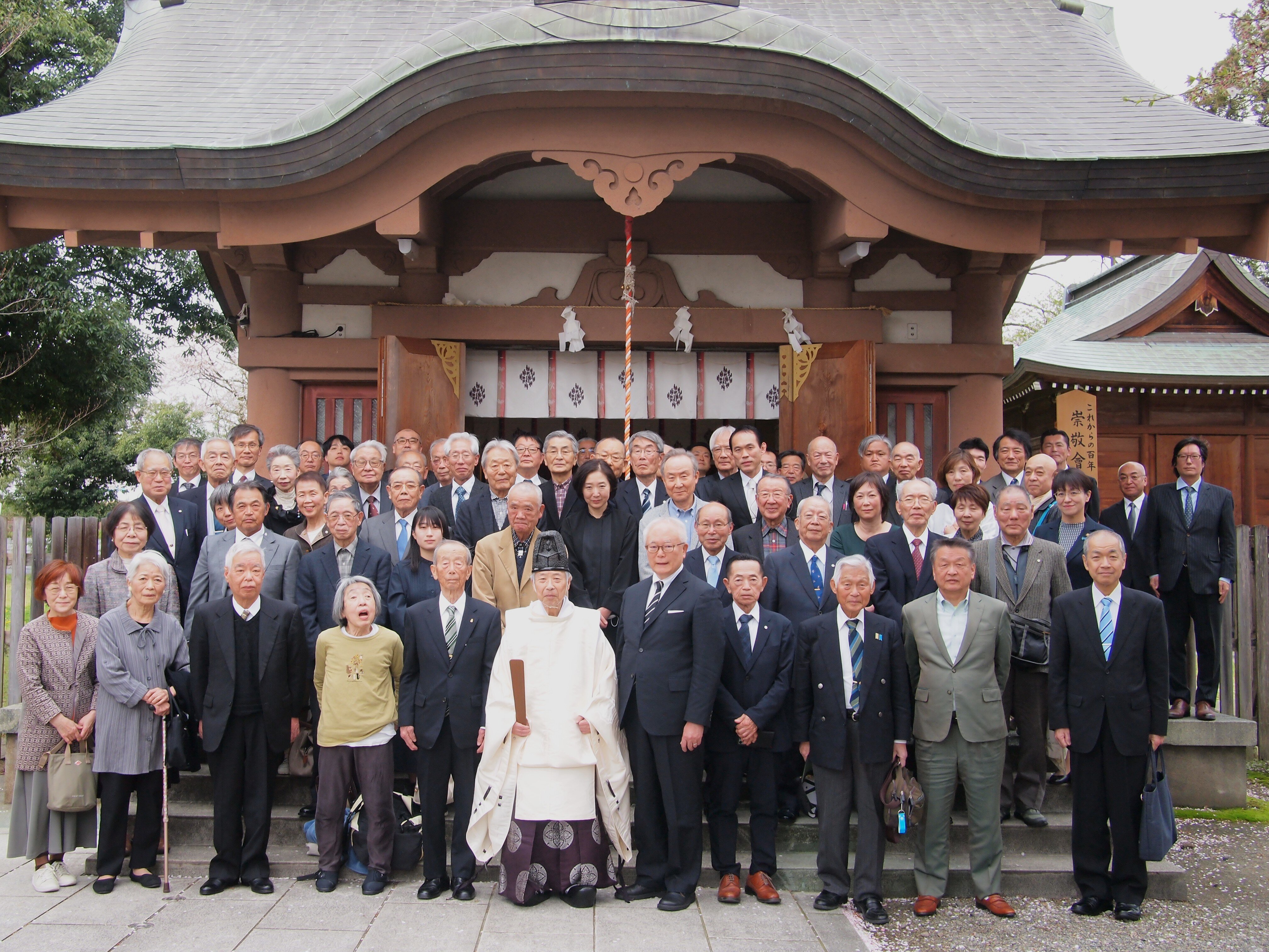 伊佐雄志神社では遺族代表として梨雲福祉会 理事長 林一枝様が代表で玉串を奉りて拝礼し、会員一同にて記念撮影を行ひ、参集殿にて総会を行ひました。