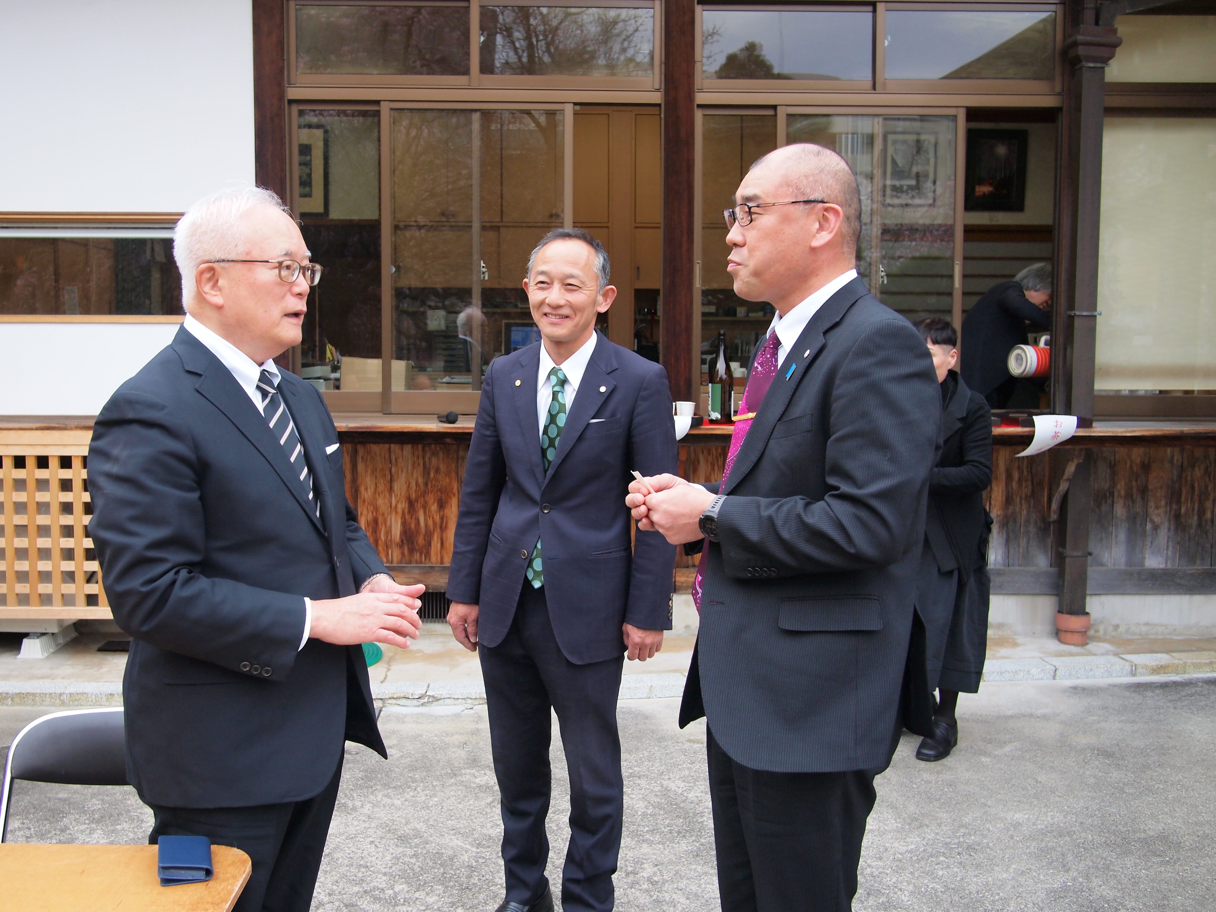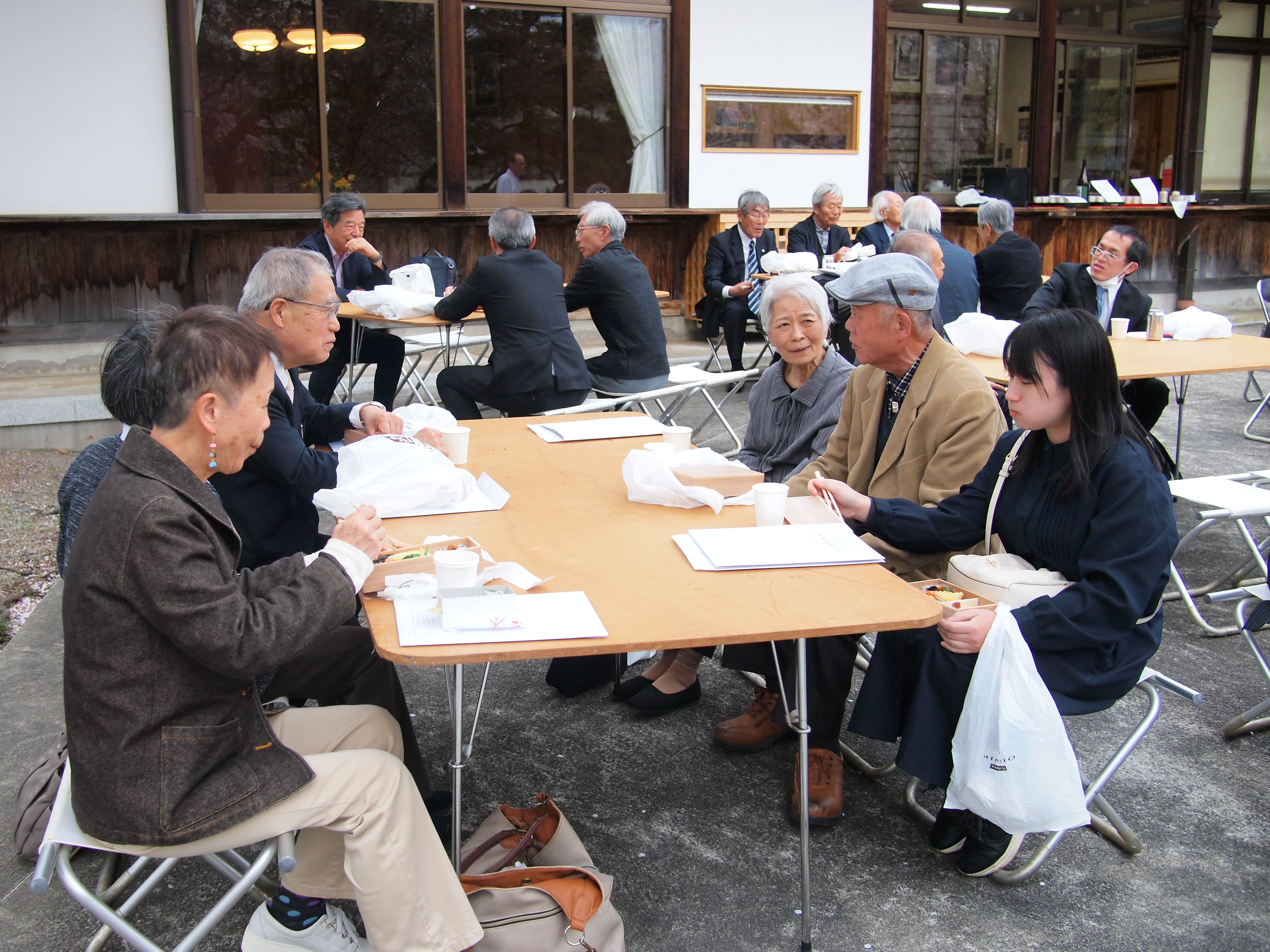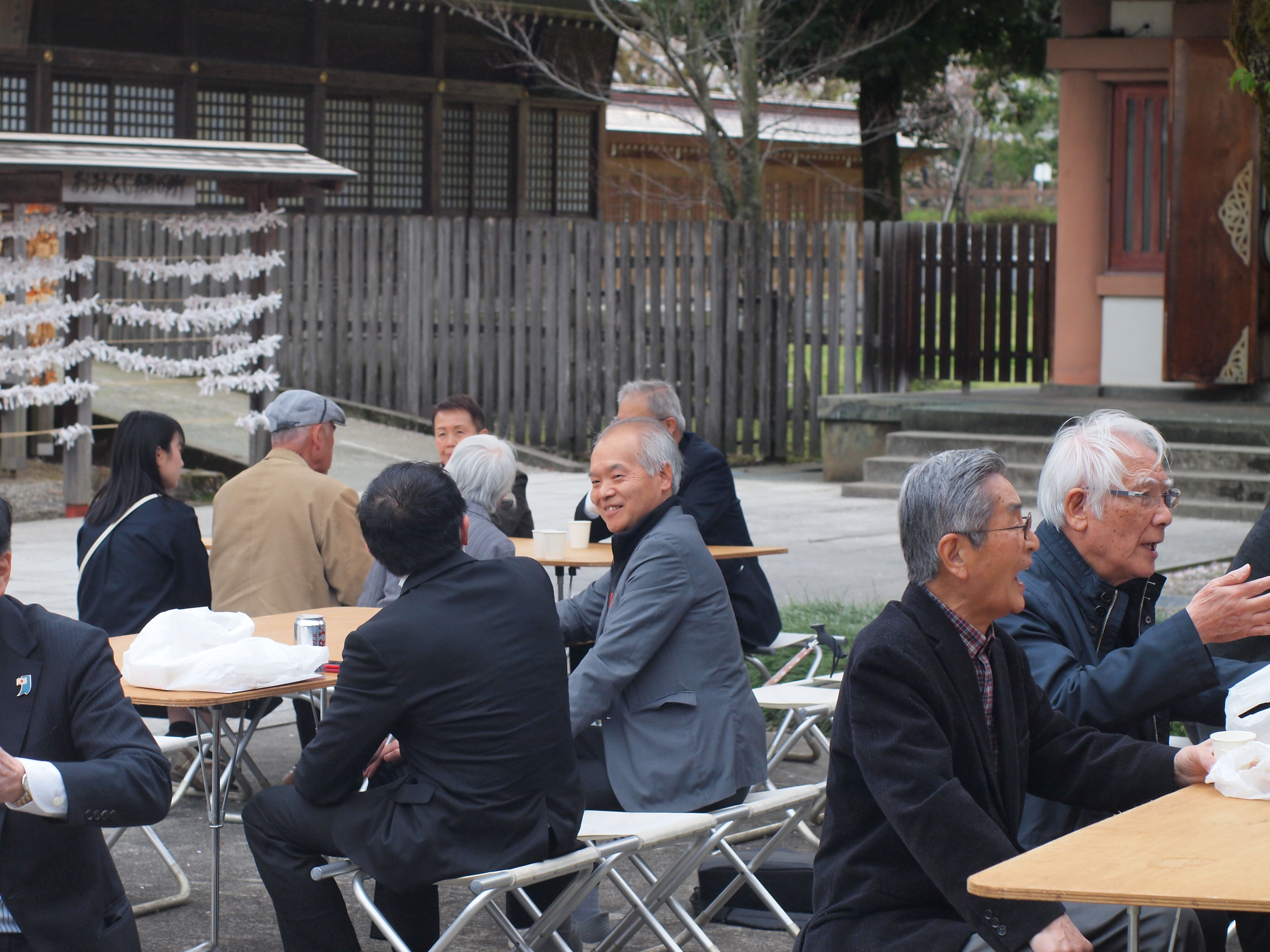 講演会の後には、社務所の前にて、谷口会長を囲んで直会を致しました。